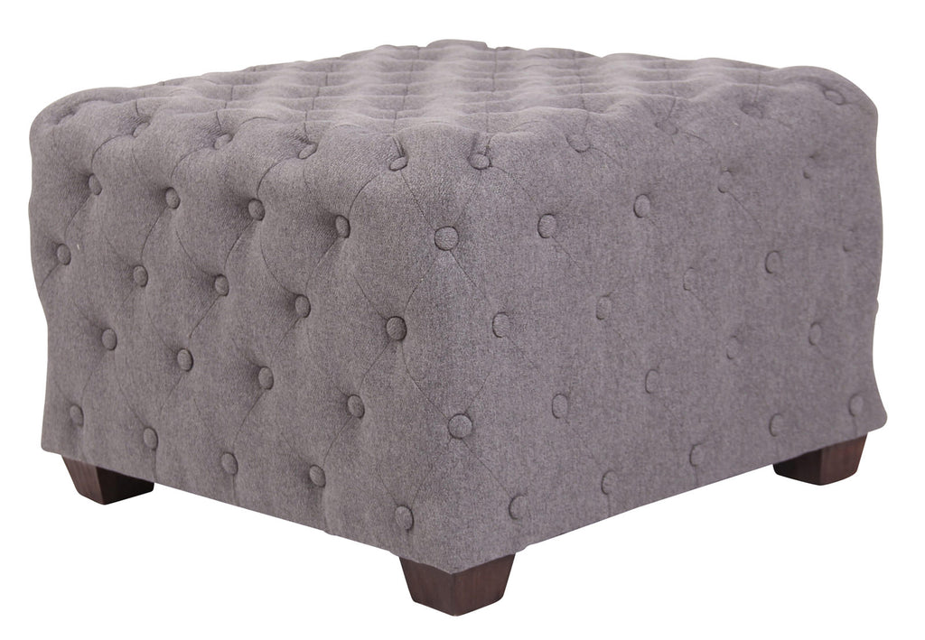Tabouret bas repose-pieds pouf forme carré en tissu gris capitonné 10_0003715
