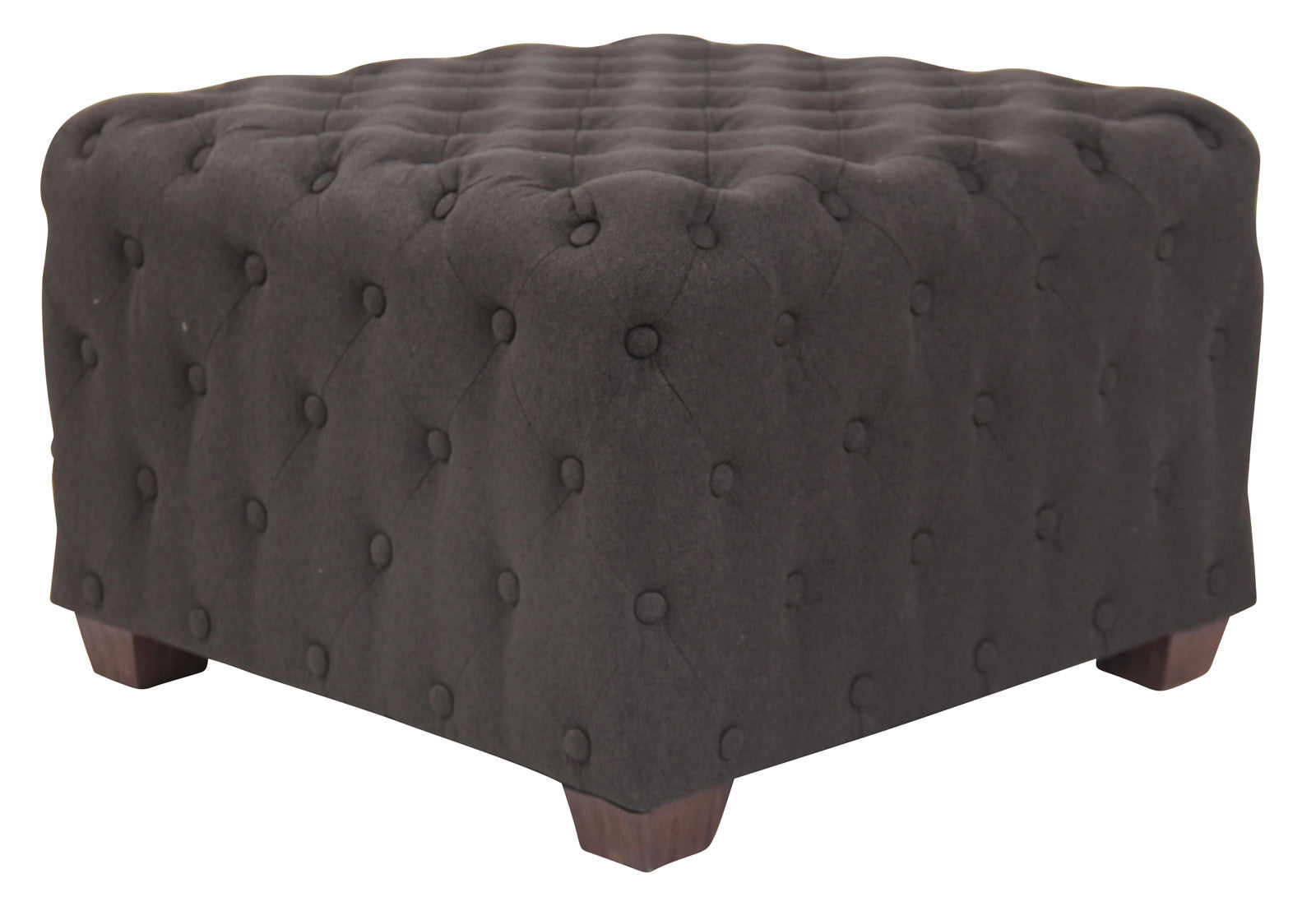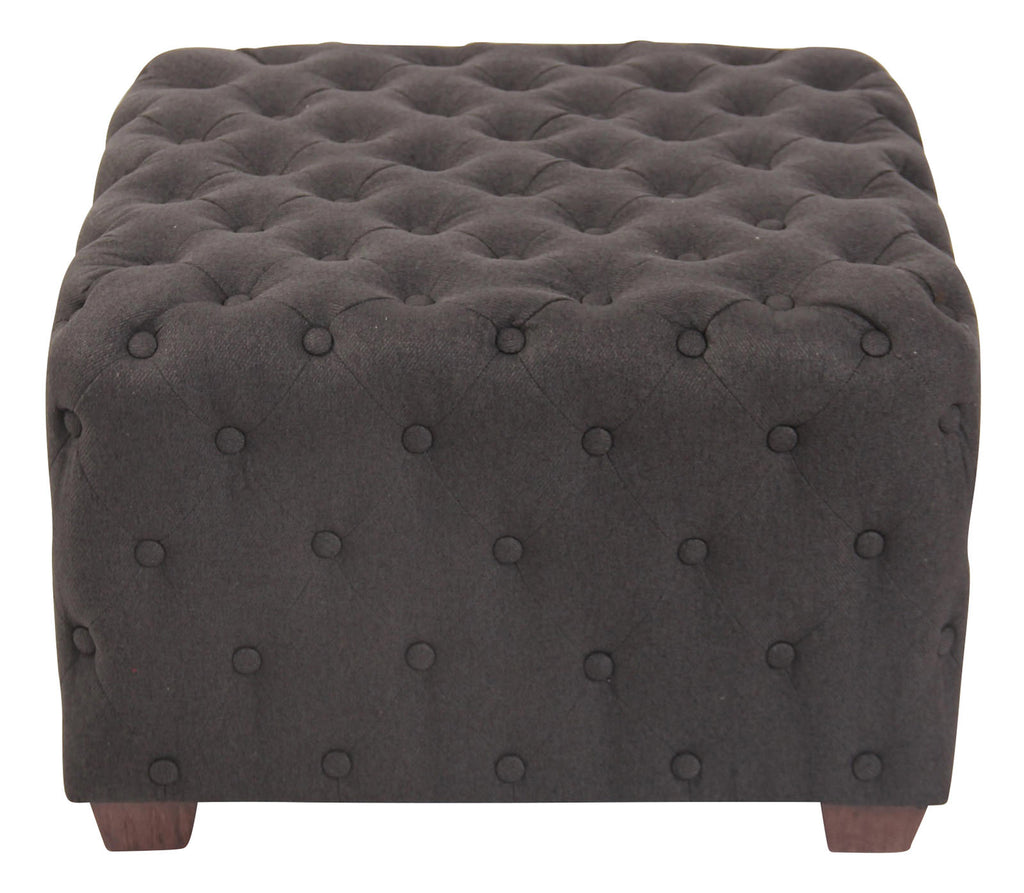 Tabouret bas repose-pieds pouf forme carré en tissu gris foncé capitonné 10_0003714