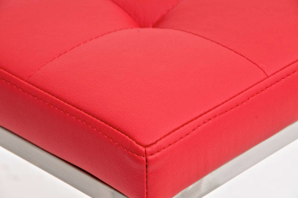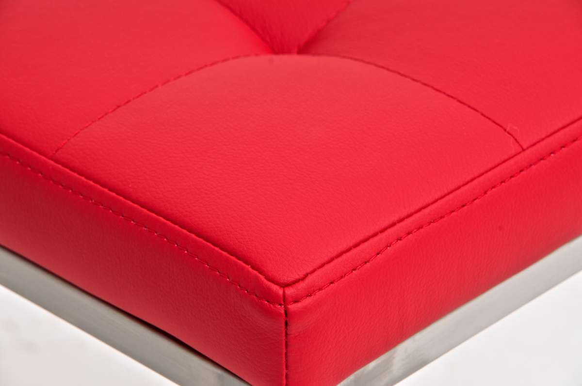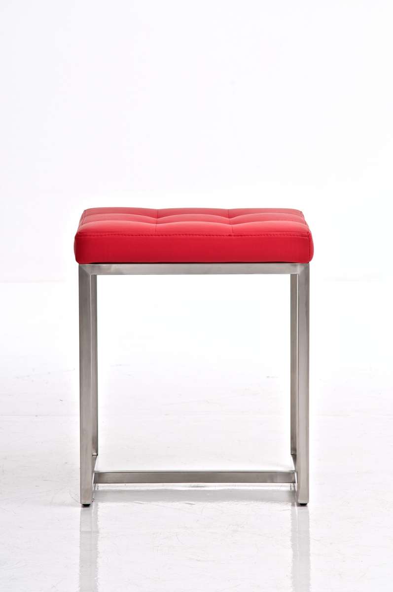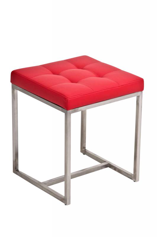 Tabouret bas en synthétique rouge pieds acier inoxydable brossé mat classique et pratique 10_0000985