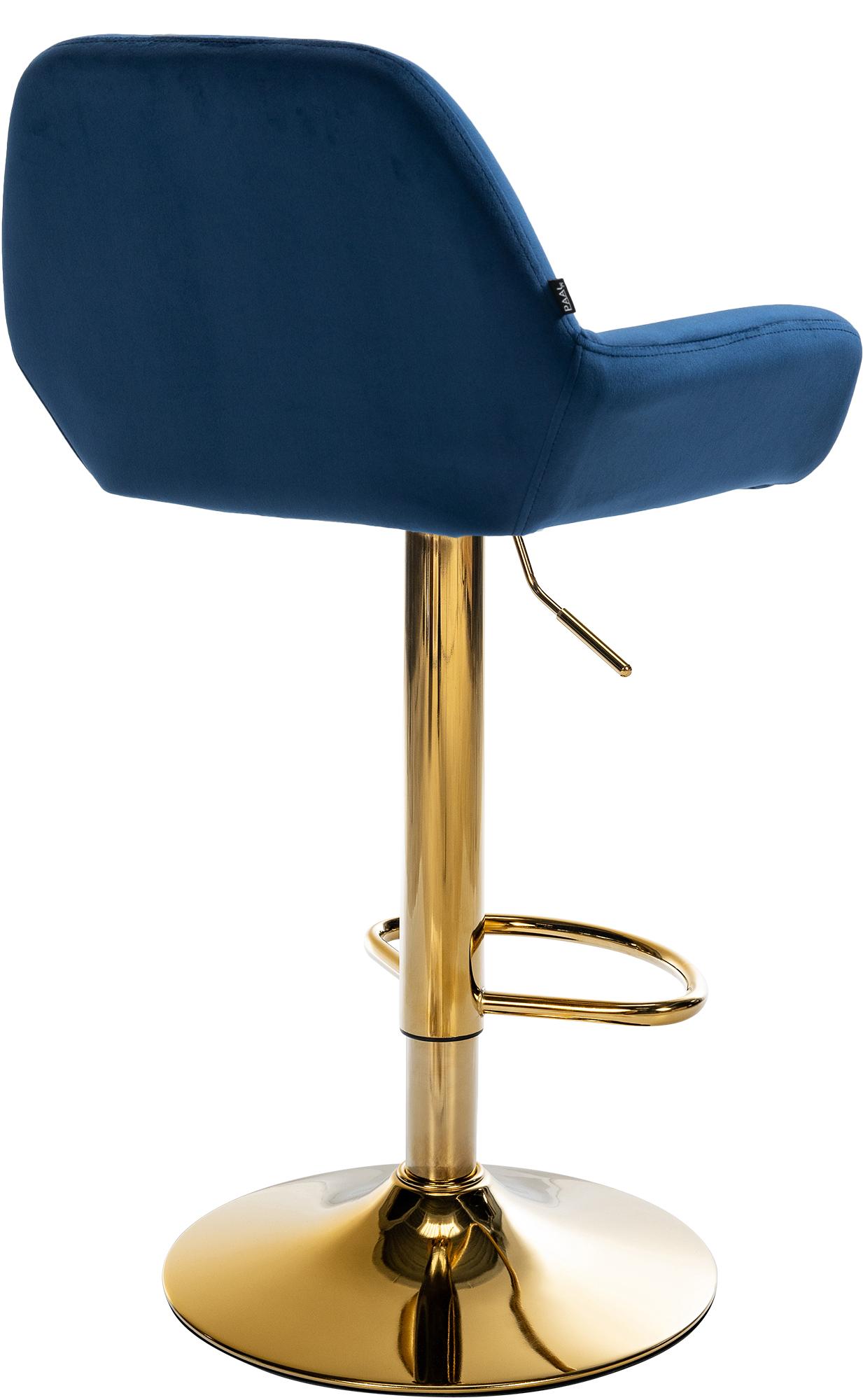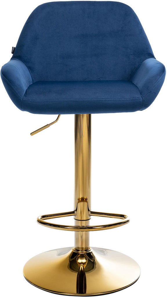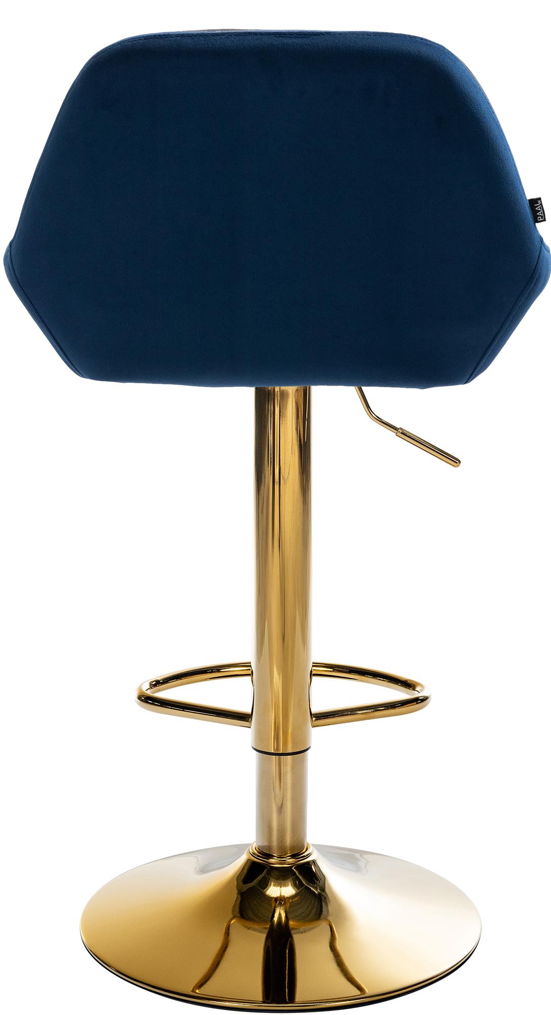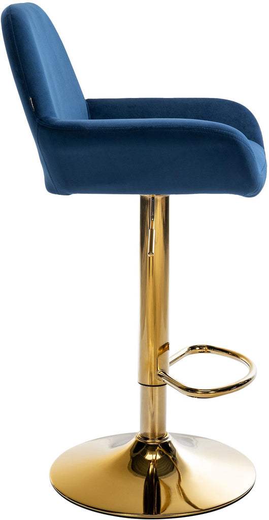 Tabouret de bar x1 avec repose-pieds et accoudoirs en velours bleu piètement en trompette métal doré 10_0006493