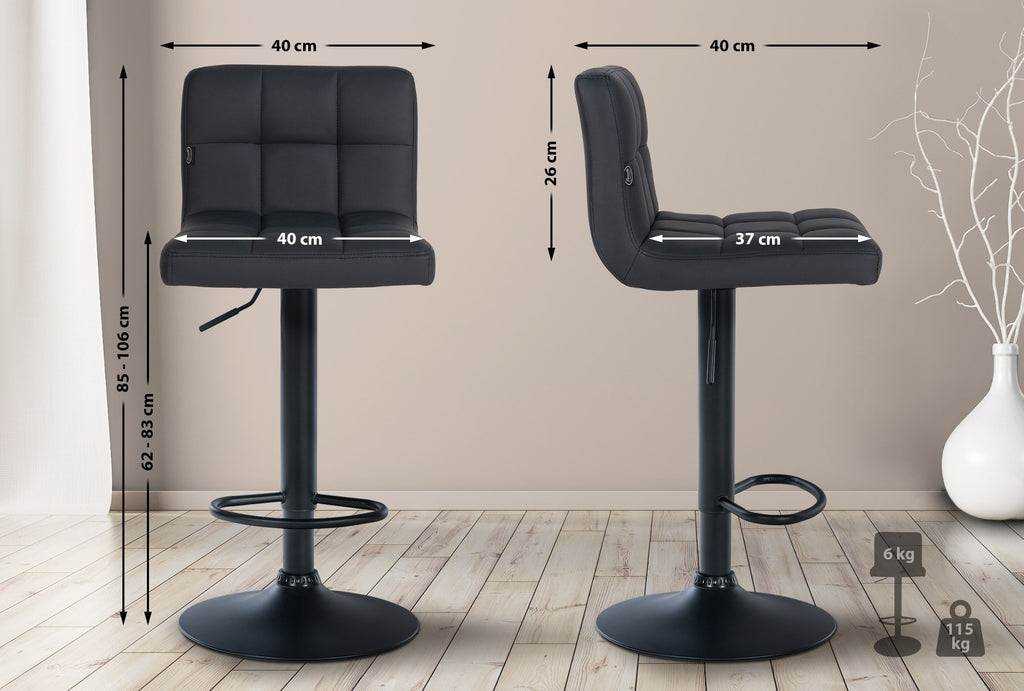 Tabouret de bar chaise haute de bar pied trompette métal noir siège synthétique noir