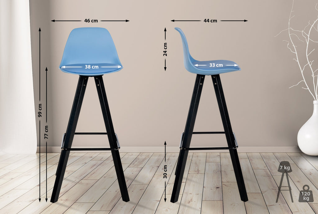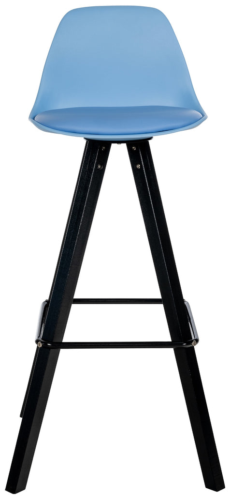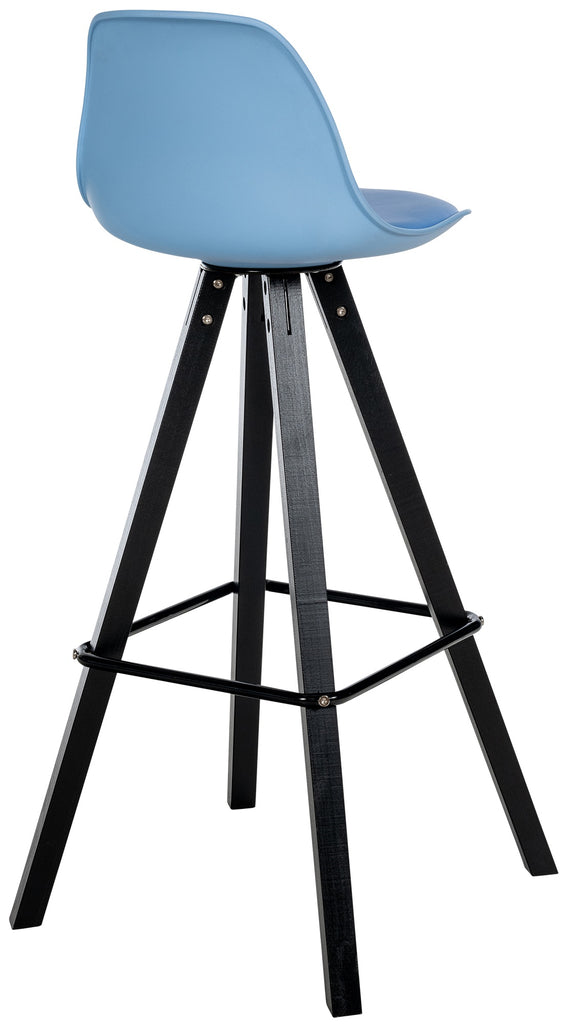 Tabouret de bar chaise haute x1 repose-pieds style scandinave en plastique et PVC bleu structure en bois noir carré 10_0004631
