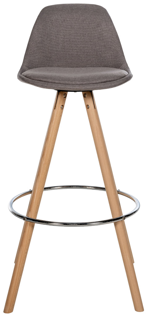 Tabouret de bar chaise haute x1 repose-pieds style scandinave en tissu taupe structure en bois clair rond 10_0004635
