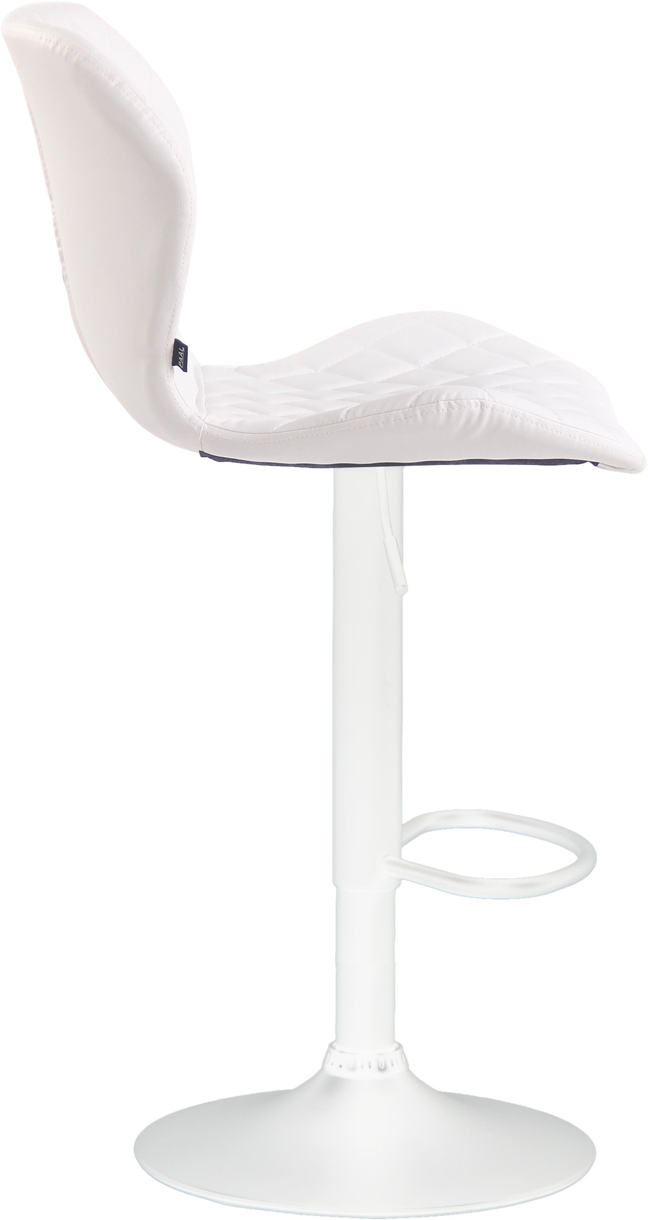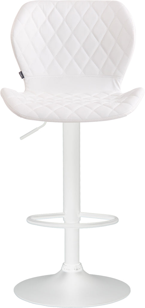 Tabouret de bar x1 avec coutures décoratives en forme de losanges en PVC blanc et métal blanc 10_0004654