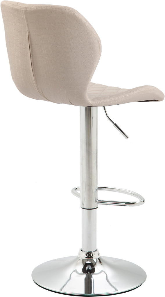 Tabouret de bar x1 avec coutures décoratives en forme de losanges en tissu crème et métal chromé 10_0004658
