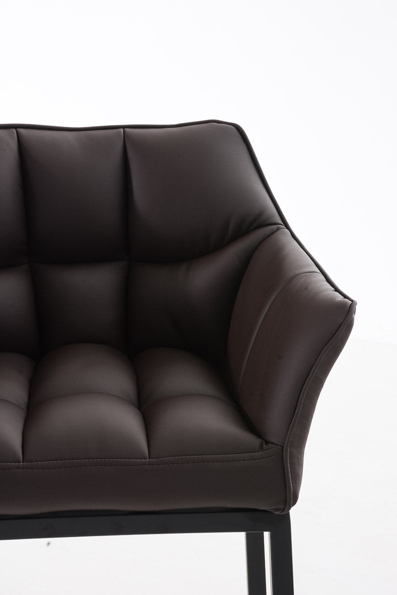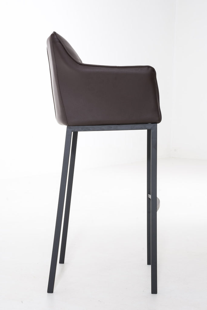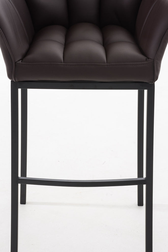 Tabouret de bar chaise haute de comptoir couture carrées assise en PVC marron 4 pieds stables en métal noir 10_0004686