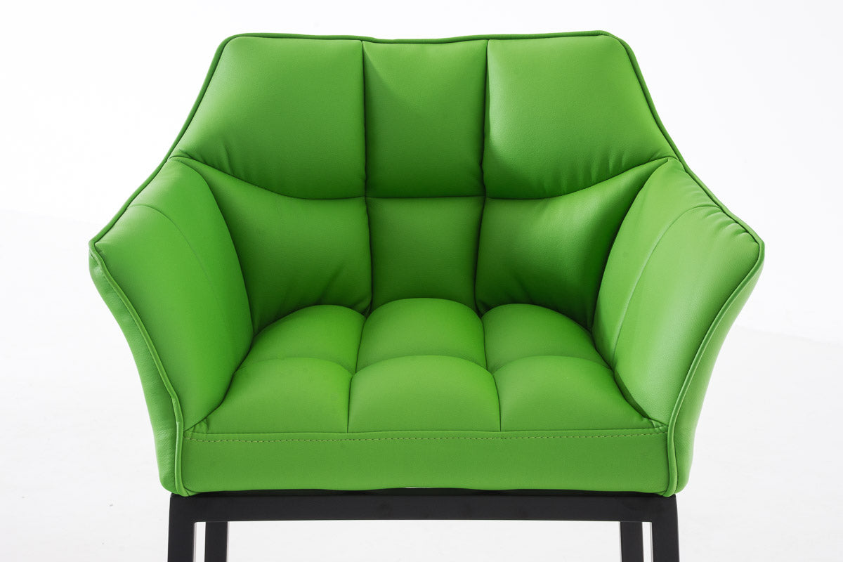 Tabouret de bar chaise haute de comptoir couture carrées assise en PVC vert 4 pieds stables en métal noir 10_0004687