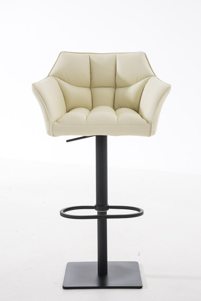 Tabouret de bar chaise haute de comptoir couture carrées assise en PVC crème cadre en métal blanc 10_0004675