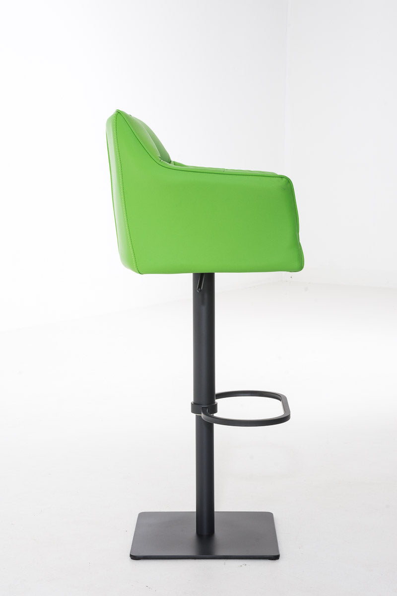 Tabouret de bar chaise haute de comptoir couture carrées assise en PVC vert cadre en métal noir 10_0004676