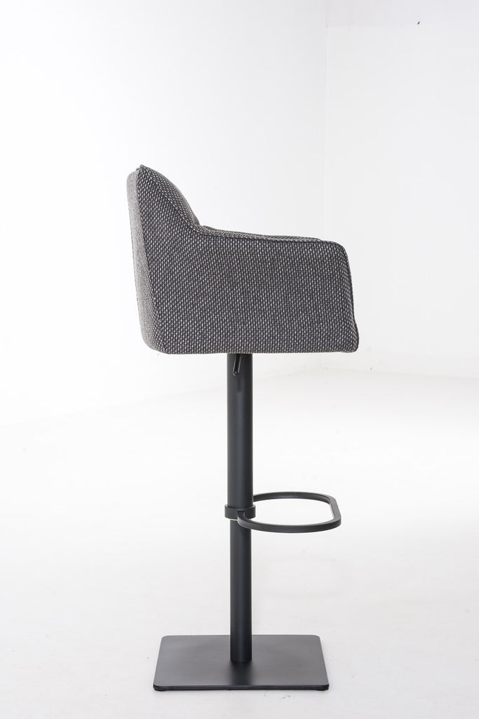 Tabouret de bar chaise haute de comptoir couture carrées assise en tissu gris titane cadre en métal noir 10_0004699