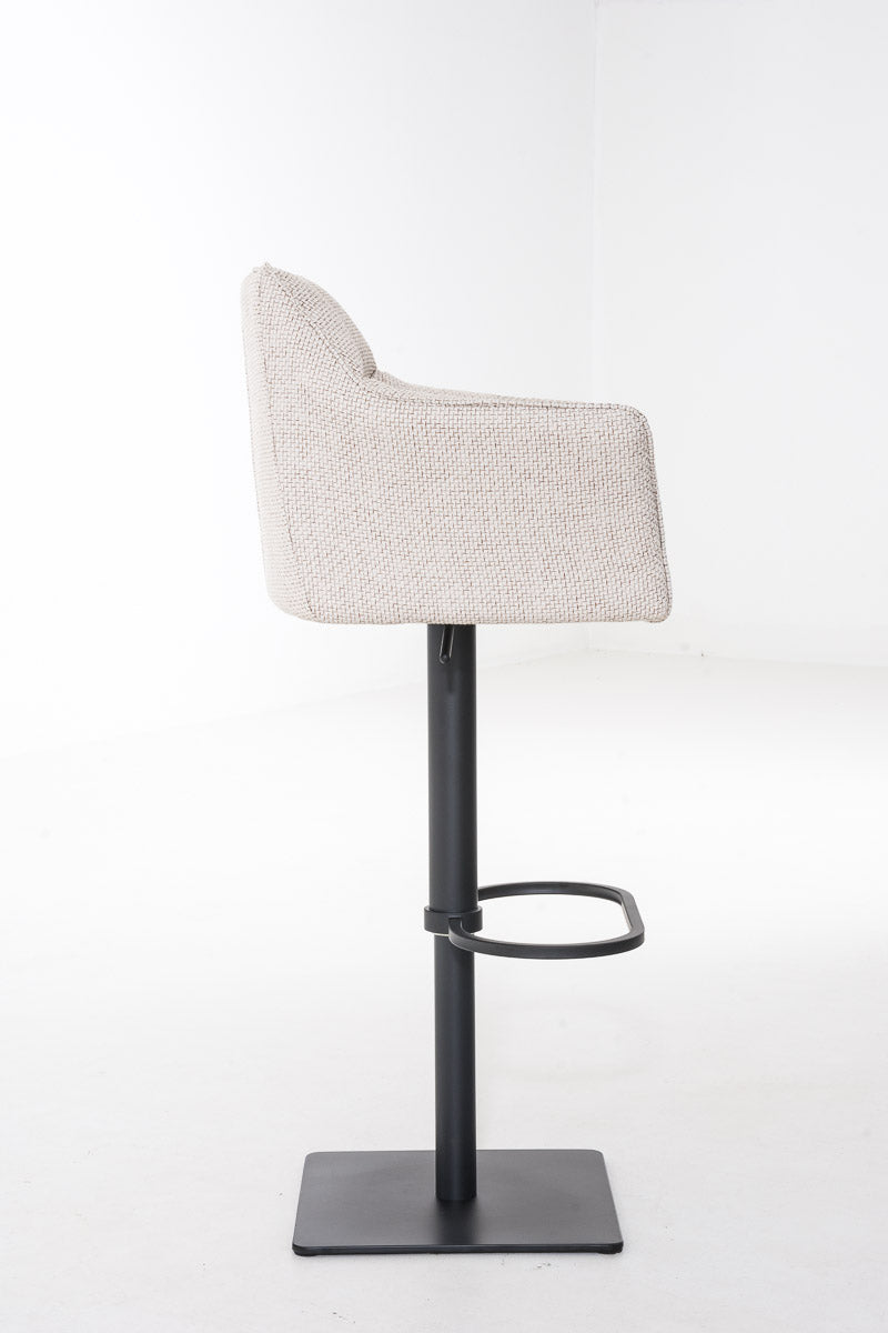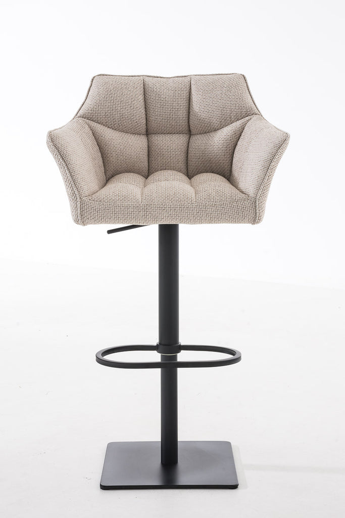 Tabouret de bar chaise haute de comptoir couture carrées assise en tissu crème cadre en métal noir 10_0004695