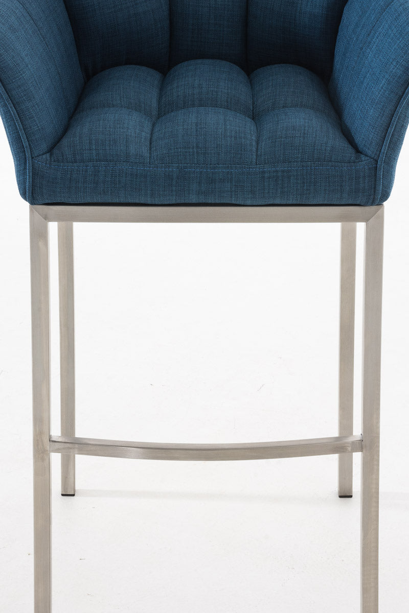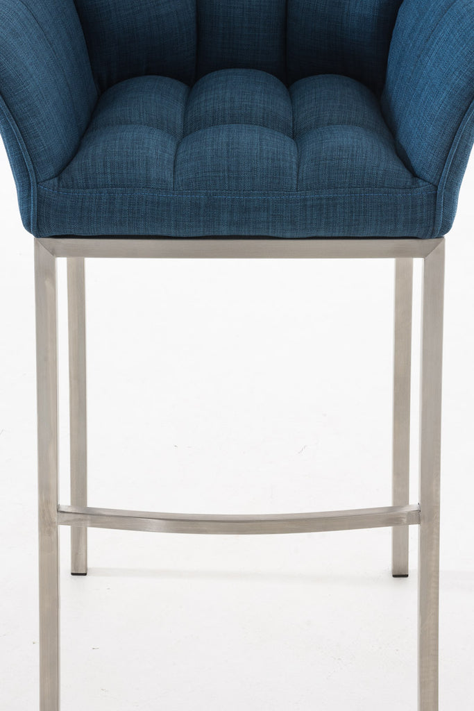 Tabouret de bar chaise haute de comptoir couture carrées assise en tissu bleu 4 pieds stables en acier inoxydable 10_0004722