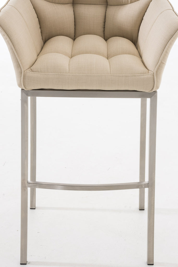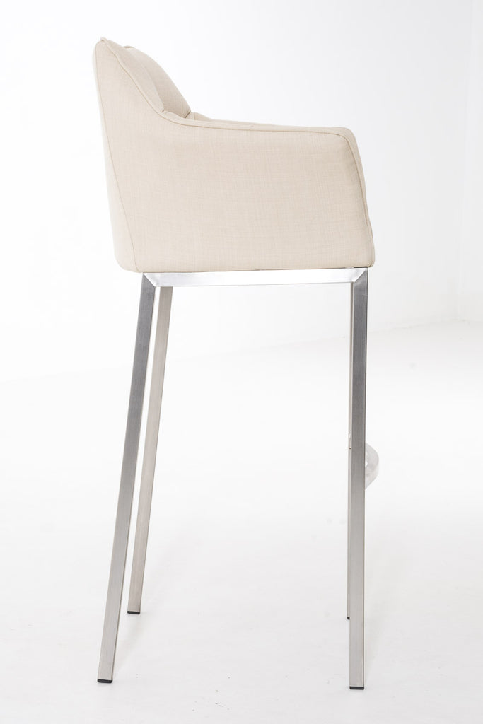 Tabouret de bar chaise haute de comptoir couture carrées assise en tissu crème 4 pieds stables en acier inoxydable 10_0004720