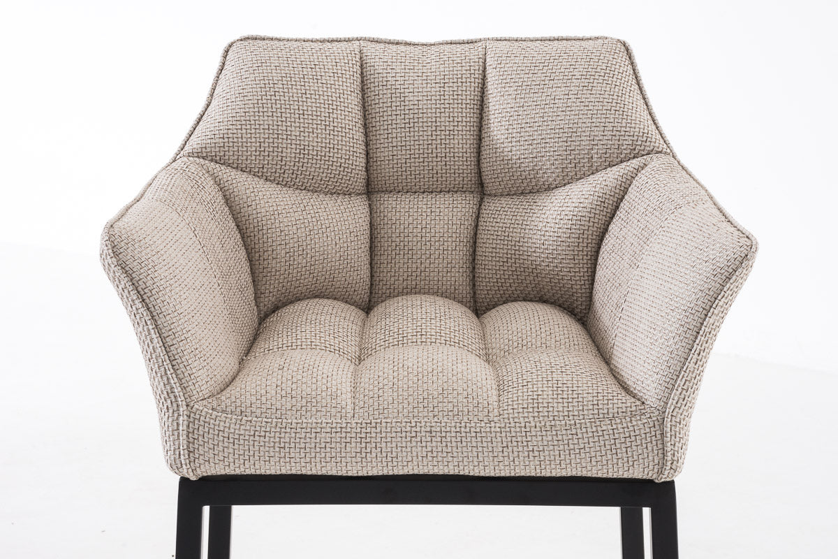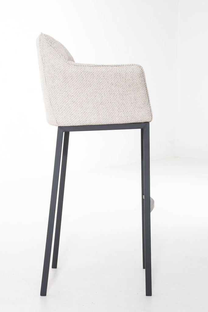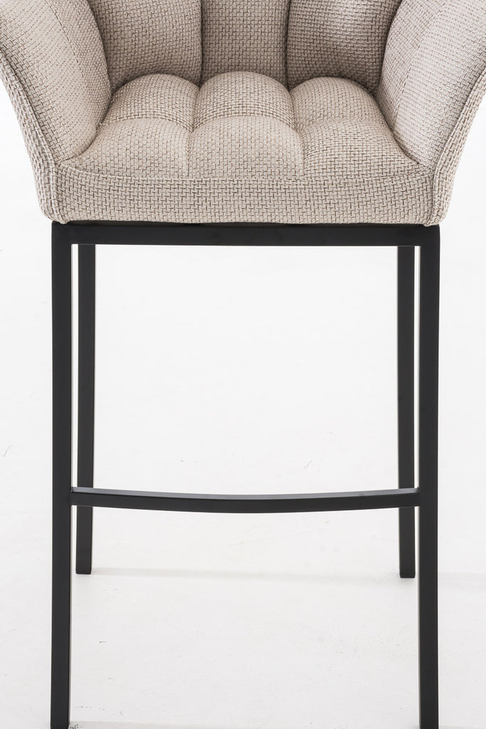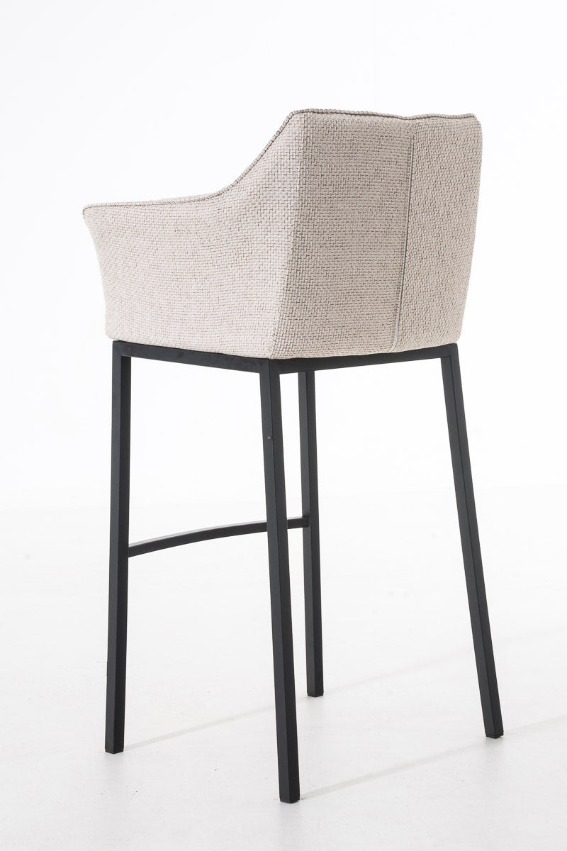 Tabouret de bar chaise haute de comptoir couture carrées assise en tissu crème 4 pieds stables en métal noir 10_0004703