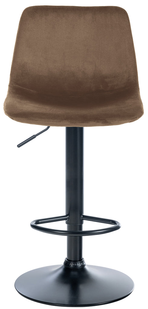 Tabouret de bar x1 repose-pieds en métal noir confortable en forme d'arc assise en velours marron 10_0004781