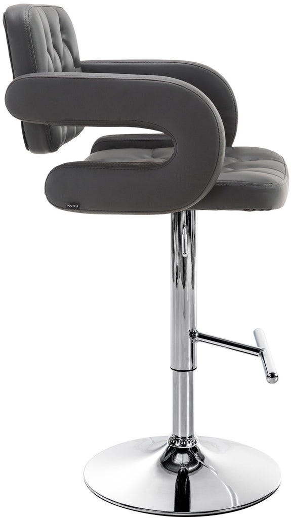 Tabouret de bar x1 avec repose-pied et accoudoirs capitonné en PVC gris support en métal chromé 10_0004791