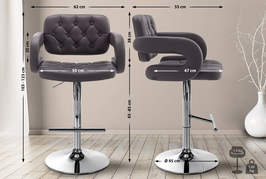 Le capitonnage de sa surface d'assise en similicuir rappelle le style Chesterfield et apporte une touche baroque à ce modèle qui se décline dans plusieurs teintes aussi originales les unes que les autres. Généreusement rembourré, le siège du tabouret de bar assure un confort optimal.