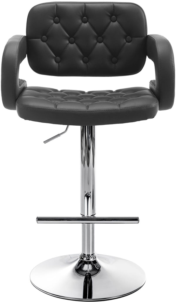 Tabouret de bar x1 avec repose-pied et accoudoirs capitonné en PVC noir support en métal chromé 10_0004789