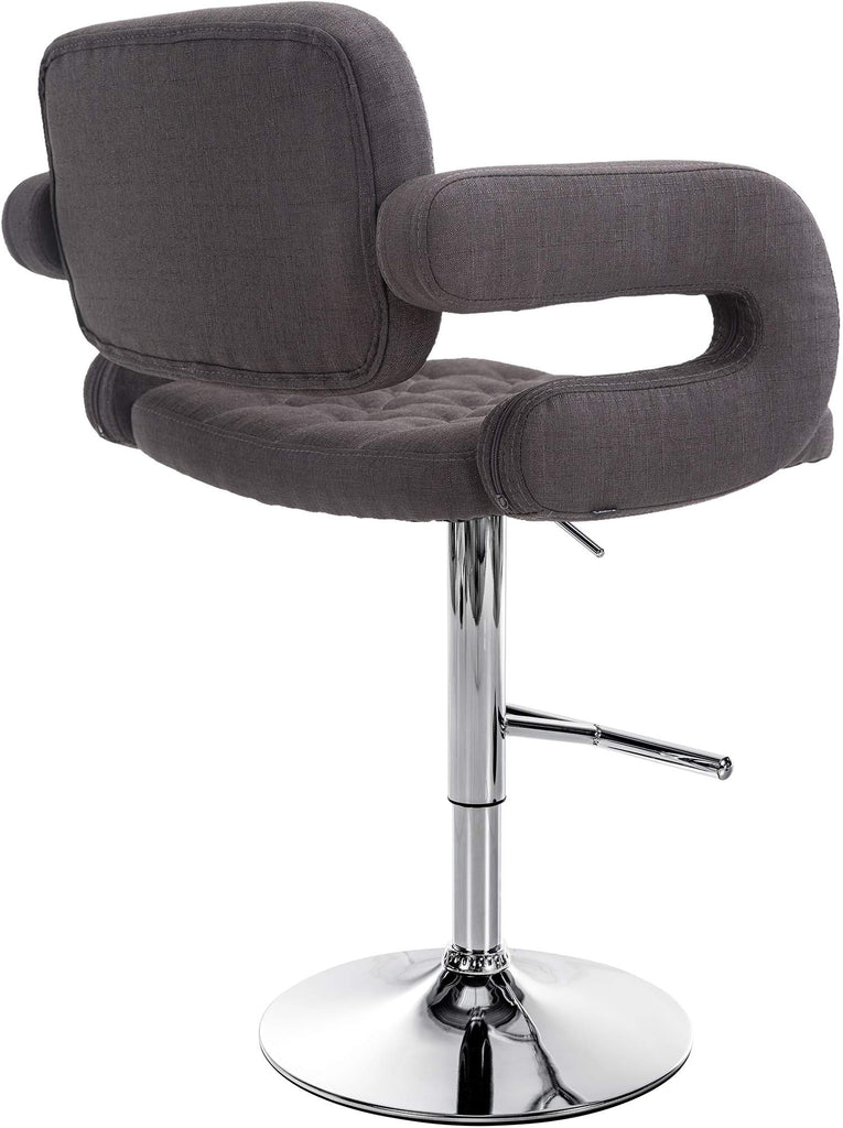 Tabouret de bar x1 avec repose-pied et accoudoirs capitonné en tissu gris foncé support en métal chromé 10_0004793