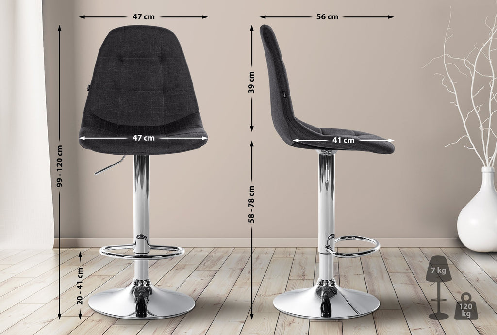 L'assise du tabouret agréablement rembourrée est dotée d'un tissu résistant et facile d'entretien et le dossier assure un grand confort d'assise.