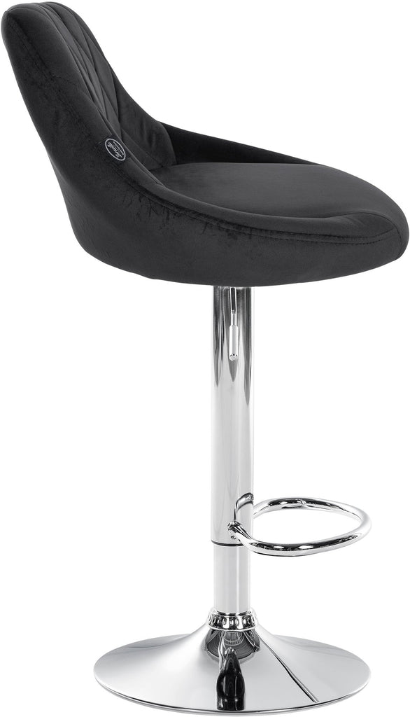 Tabouret de bar en velours noir coutures décoratives pivotant support métal chromé TDB10676