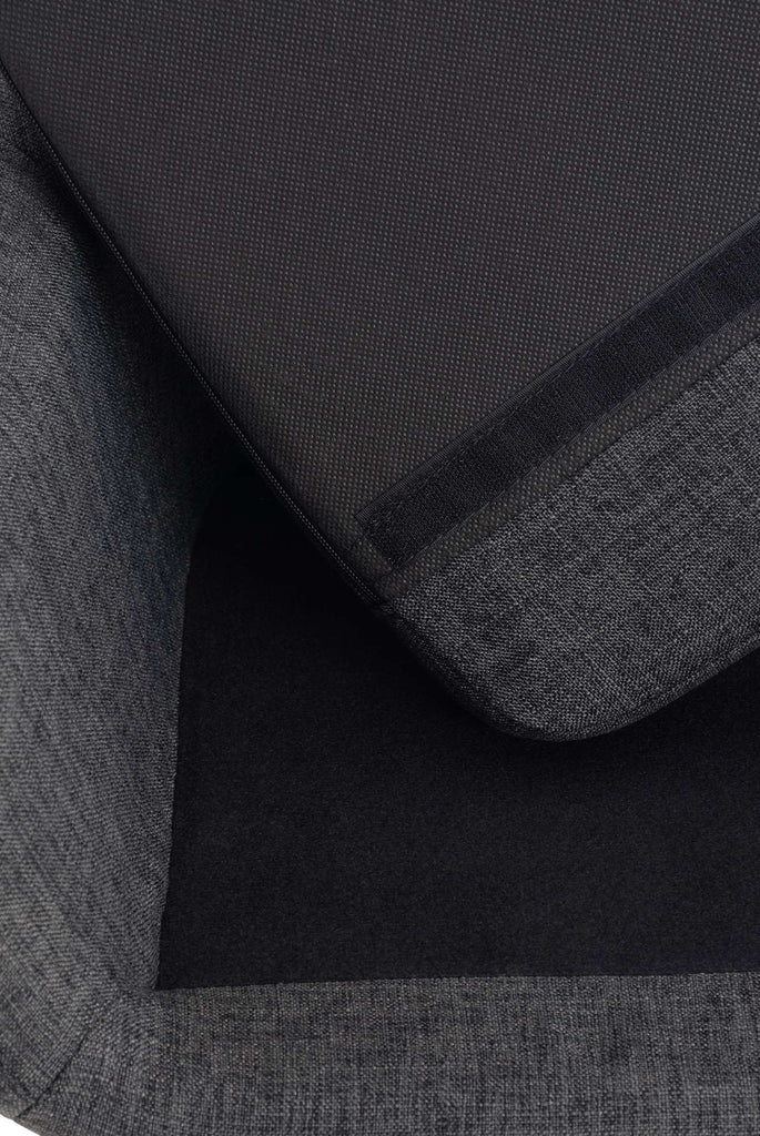 La surface d'assise dispose d'un coussin amovible, stabilisé par une fermeture Velcro situé en dessous du coussin.